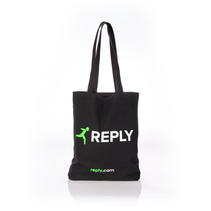 Reply branded tote bag. Dimensions: 39 x 37 cm. Weight: 300 g/m².